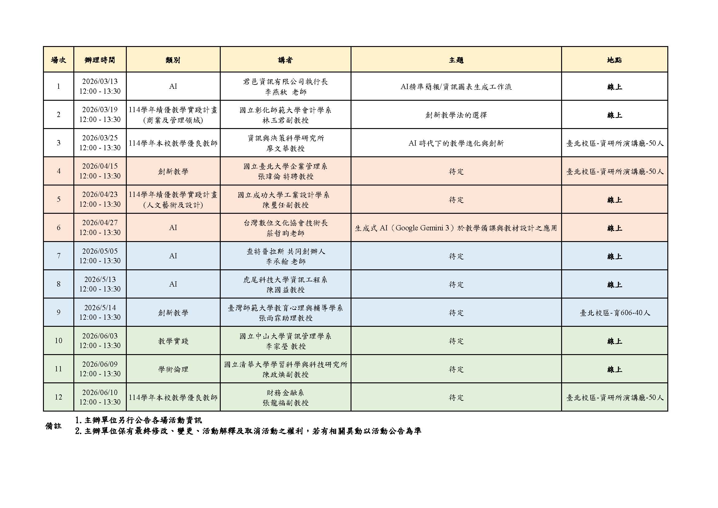 【教學資源組】教學發展中心114-2學期教師知能研習舉辦場次公告