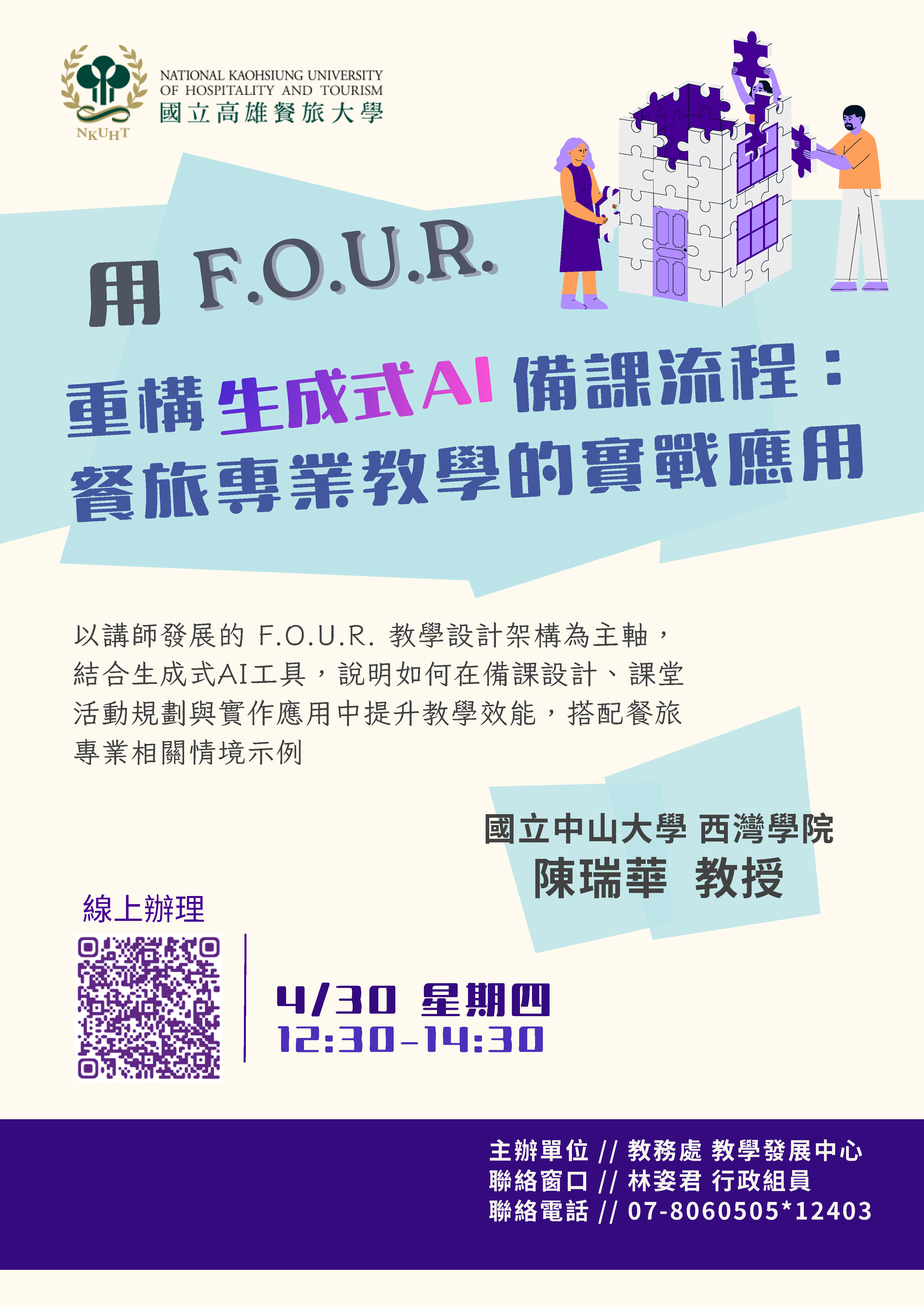 (三)主題:「用 F.O.U.R. 重構生成式AI備課流程: 餐旅專業教學的實戰應用」