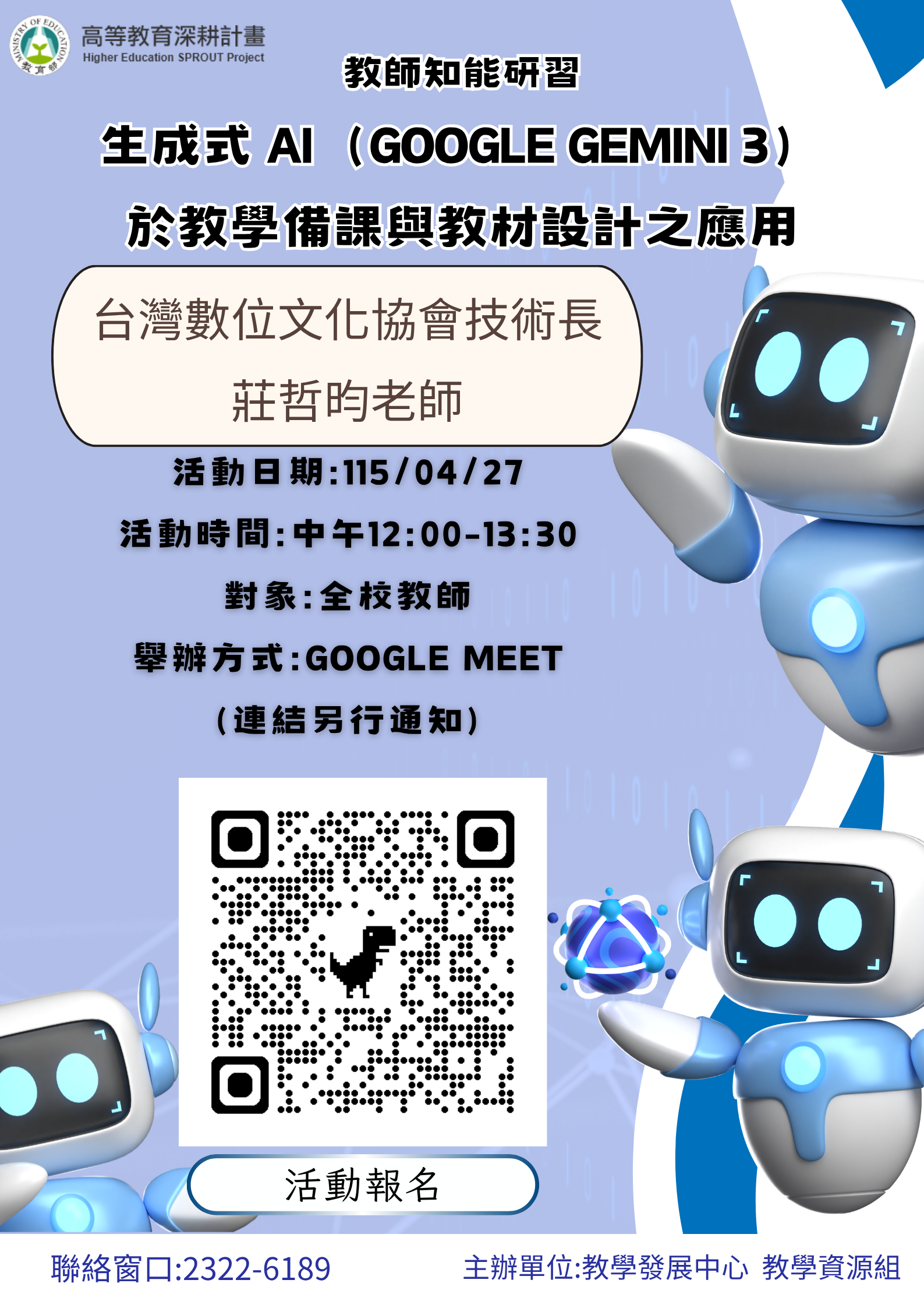 【教學資源組】115/04/27 教師知能研習 「生成式 AI(Google Gemini 3)於教學備課與教材設計之應用」
