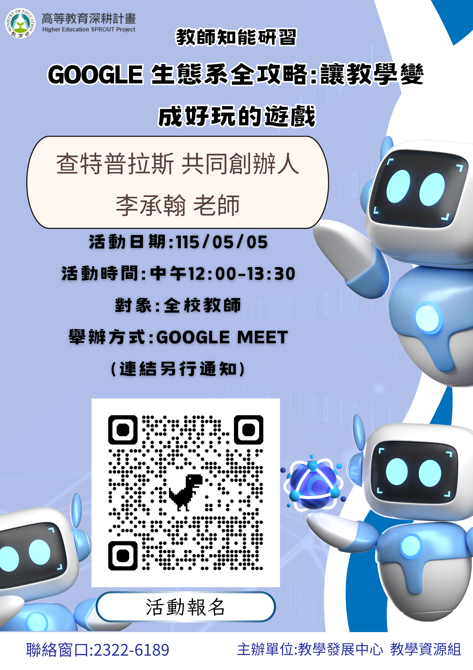 【教學資源組】115/05/05 教師知能研習 「Google 生態系全攻略:讓教學變成好玩的遊戲」
